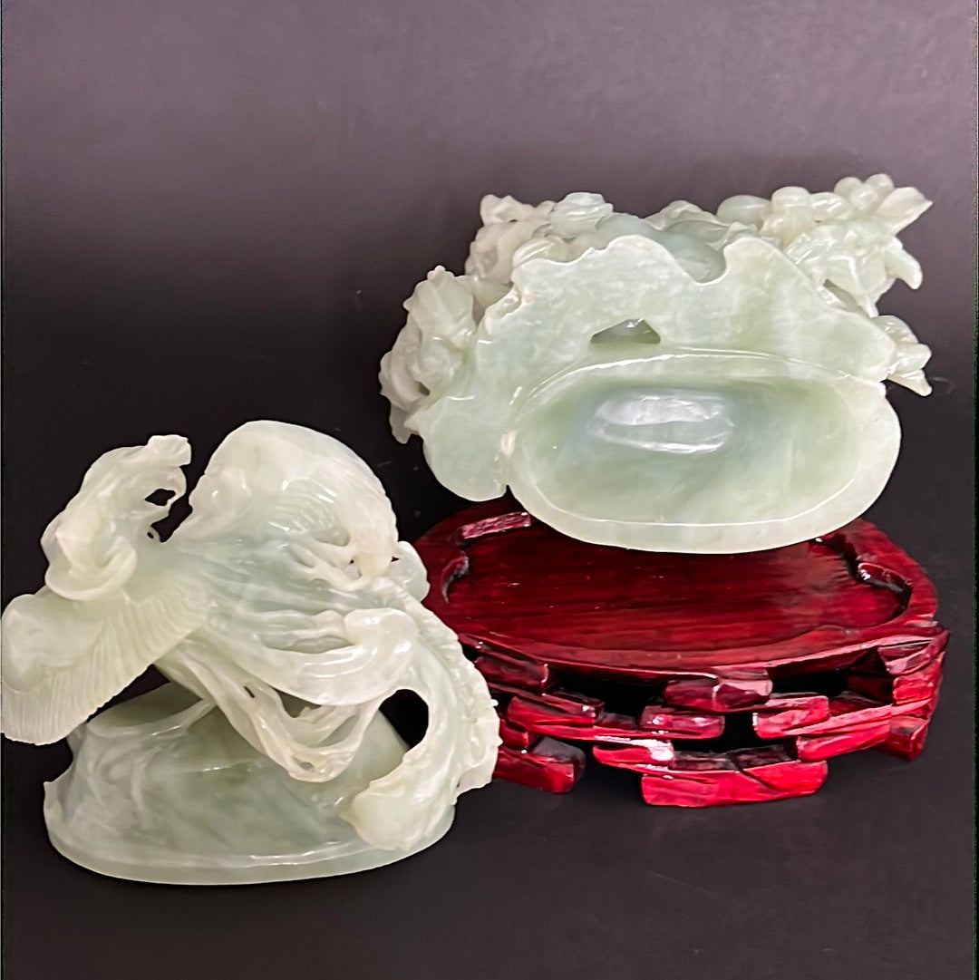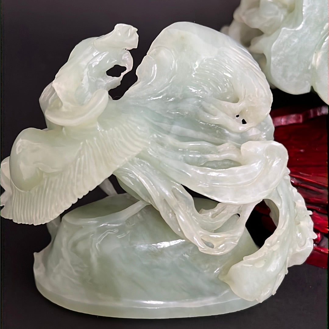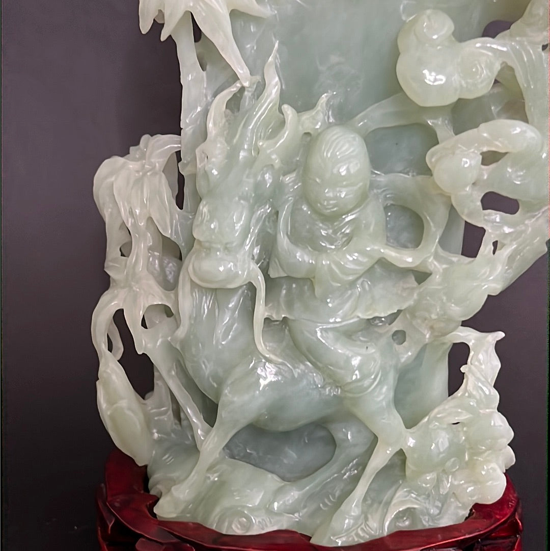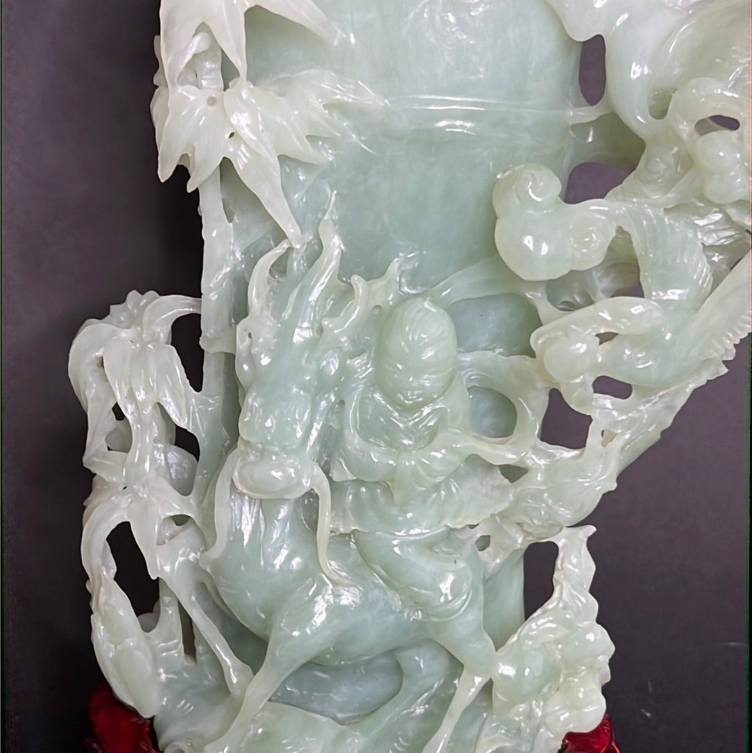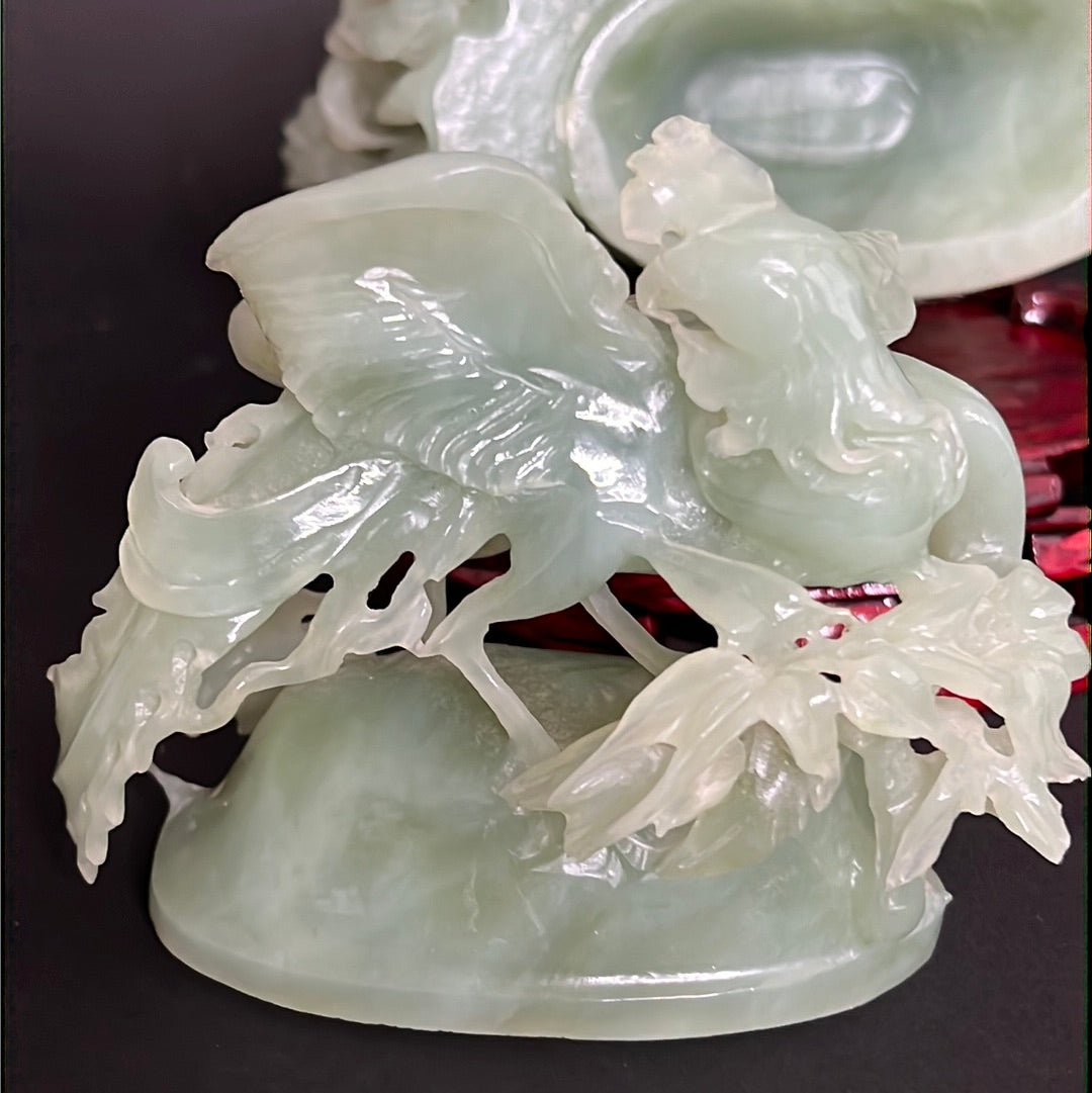 20th C. Celadon Chinese Jade Bamboo Jade Vase With mythical Dragon ,Phoenix & Crane Birds