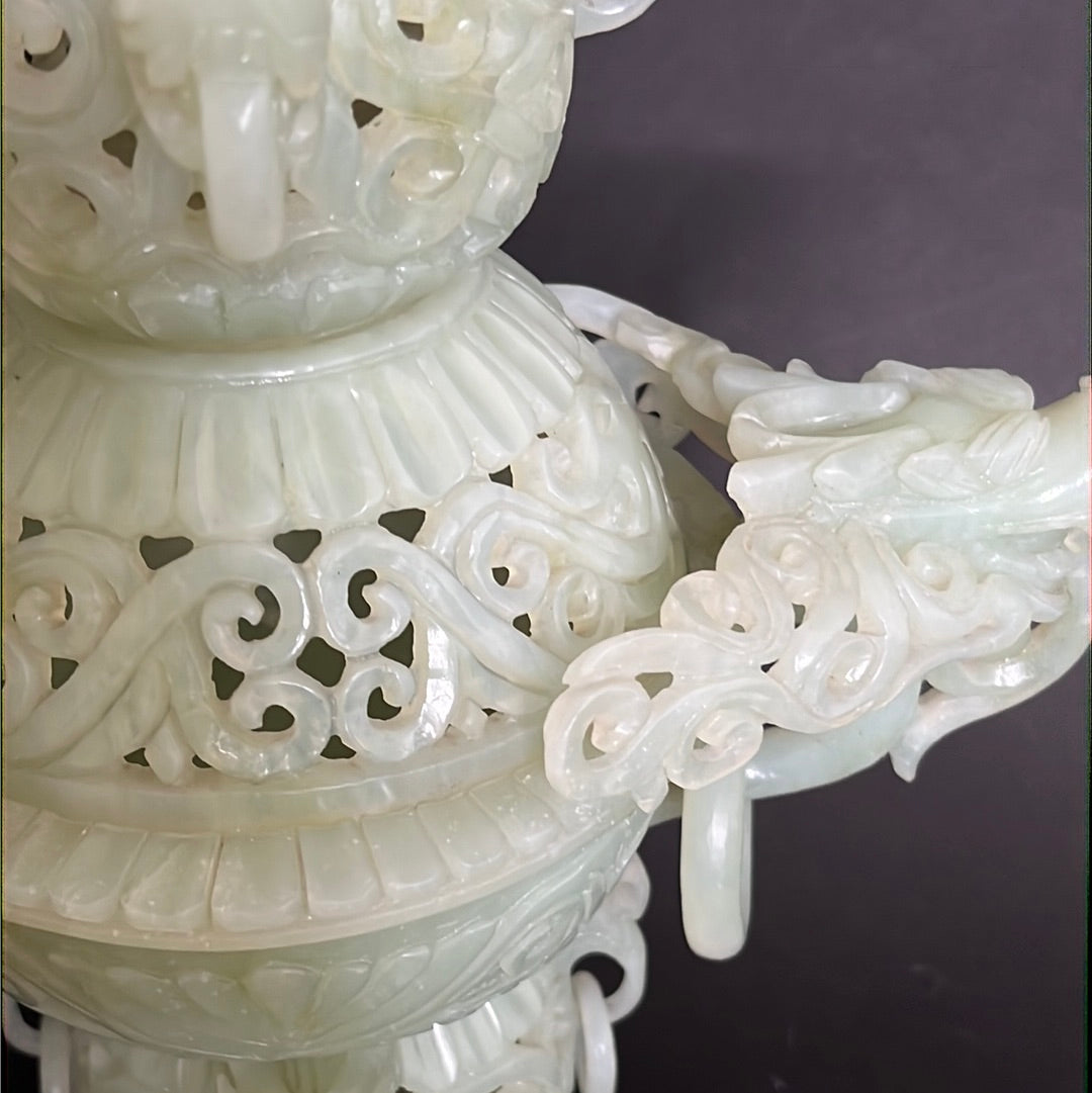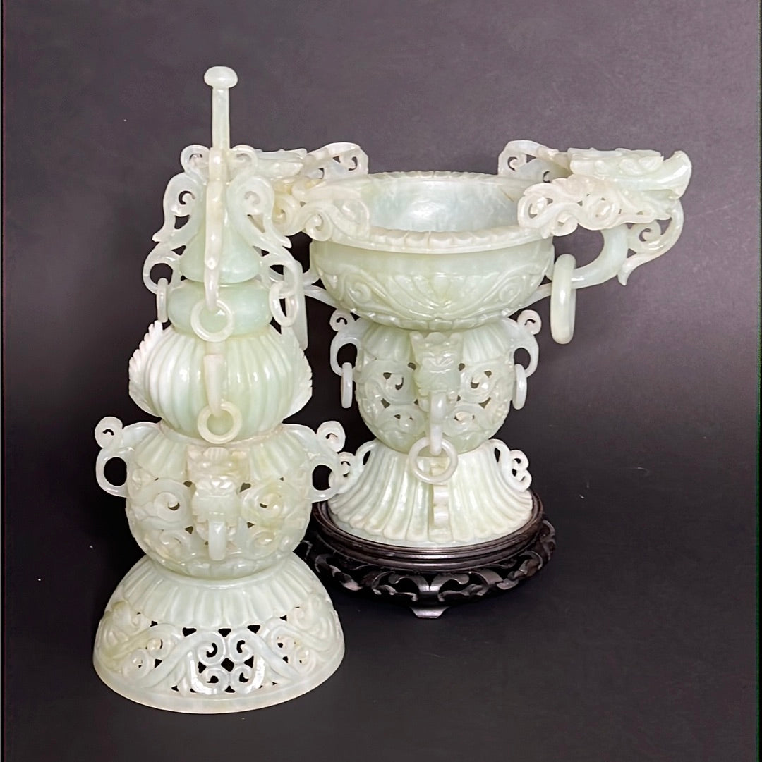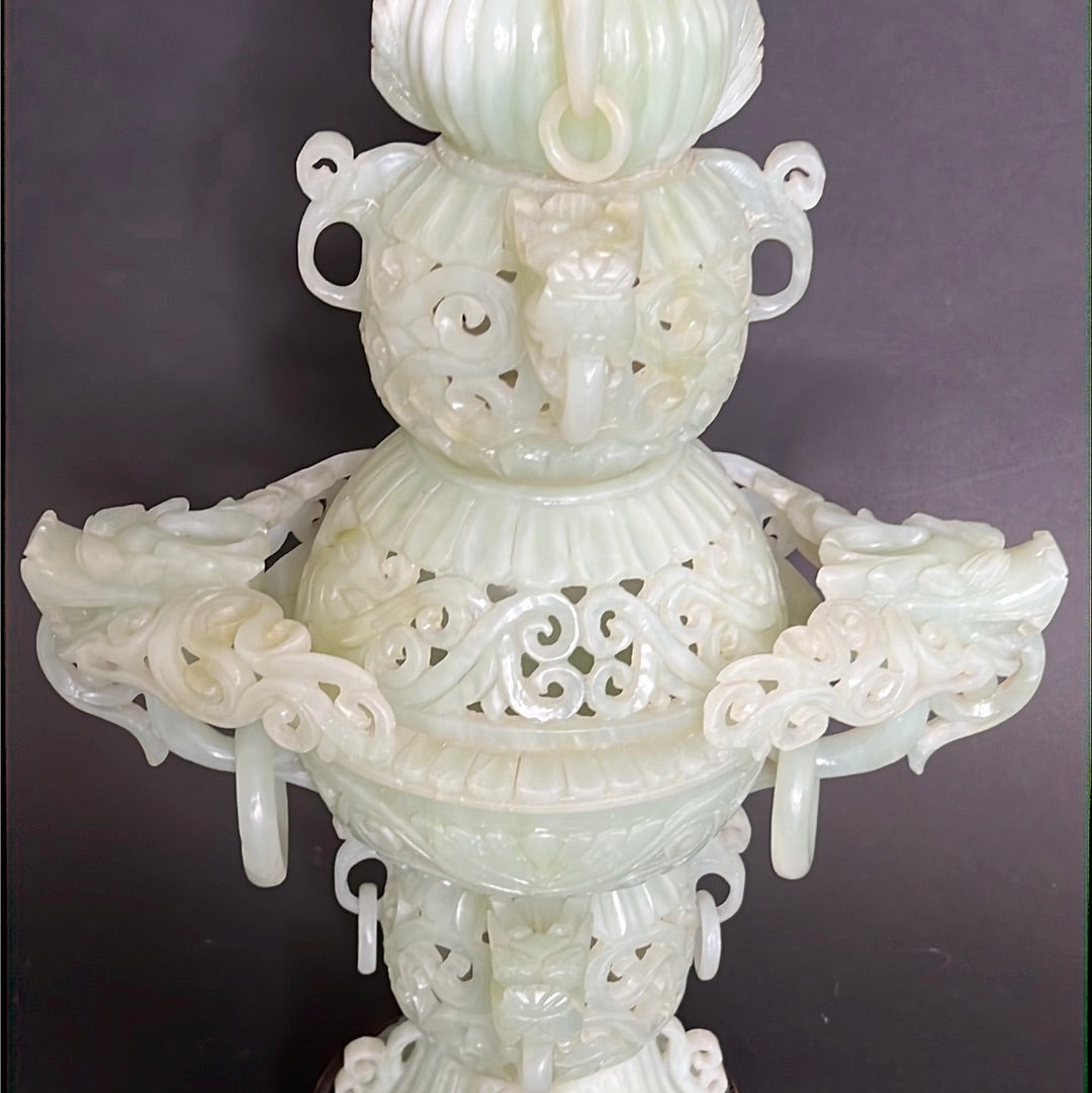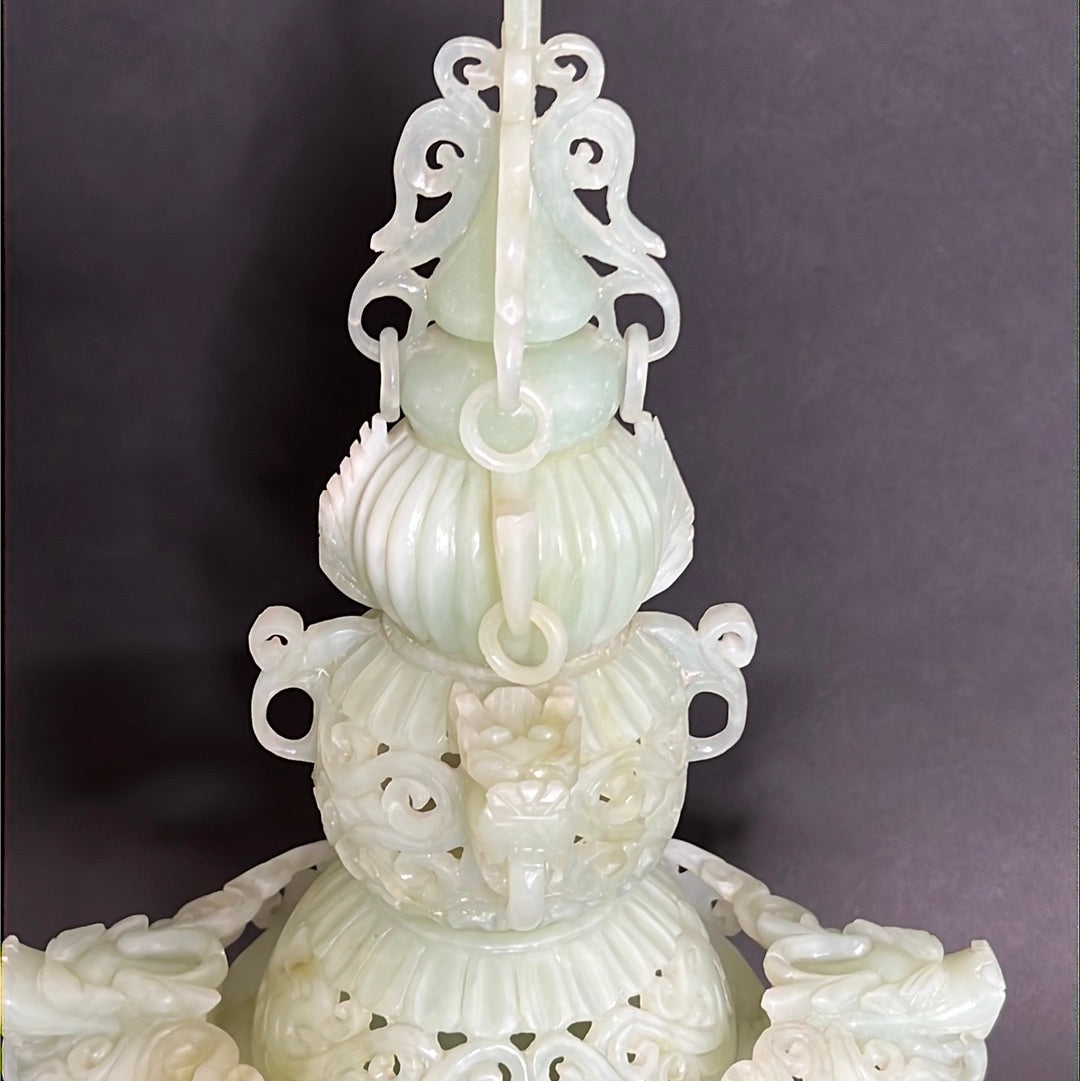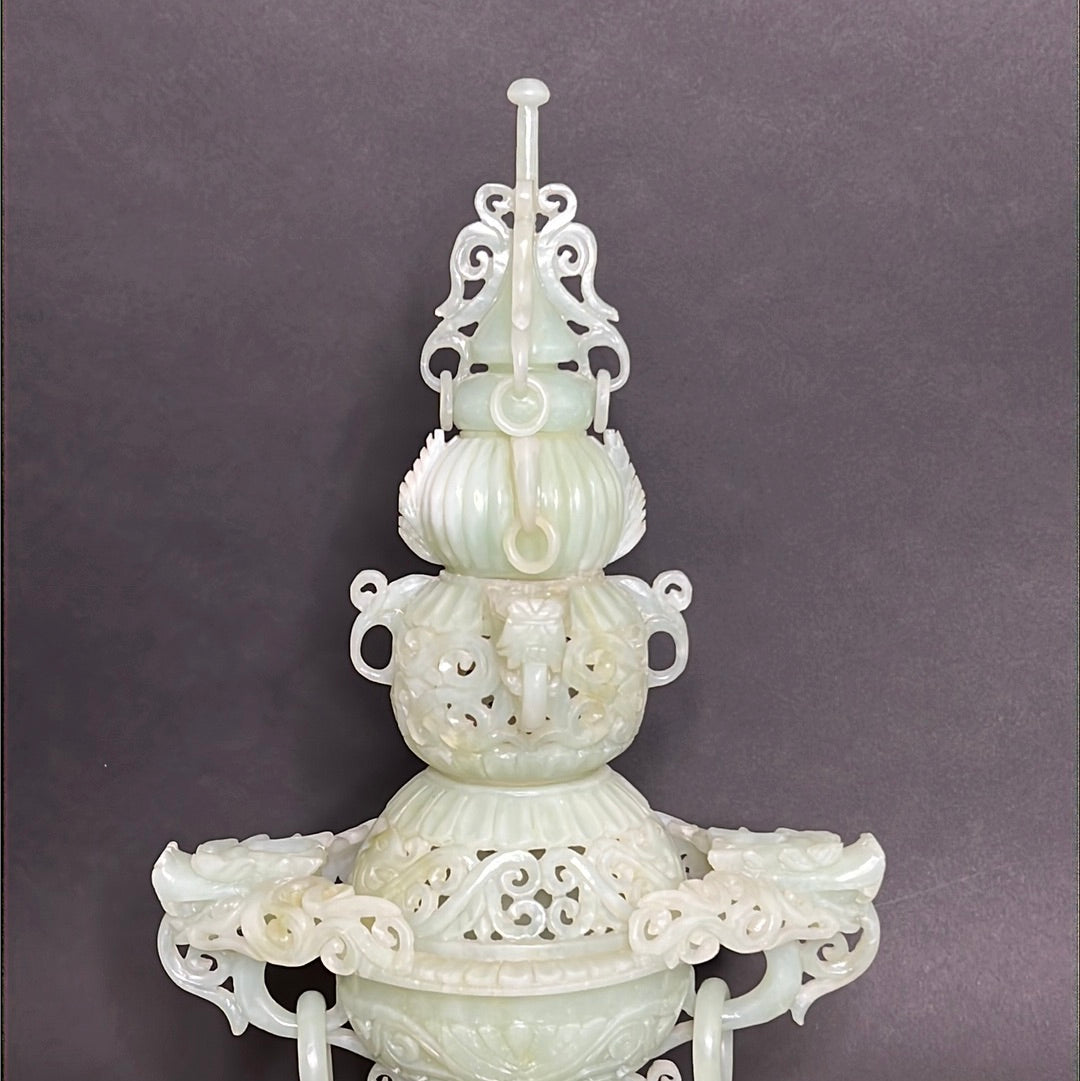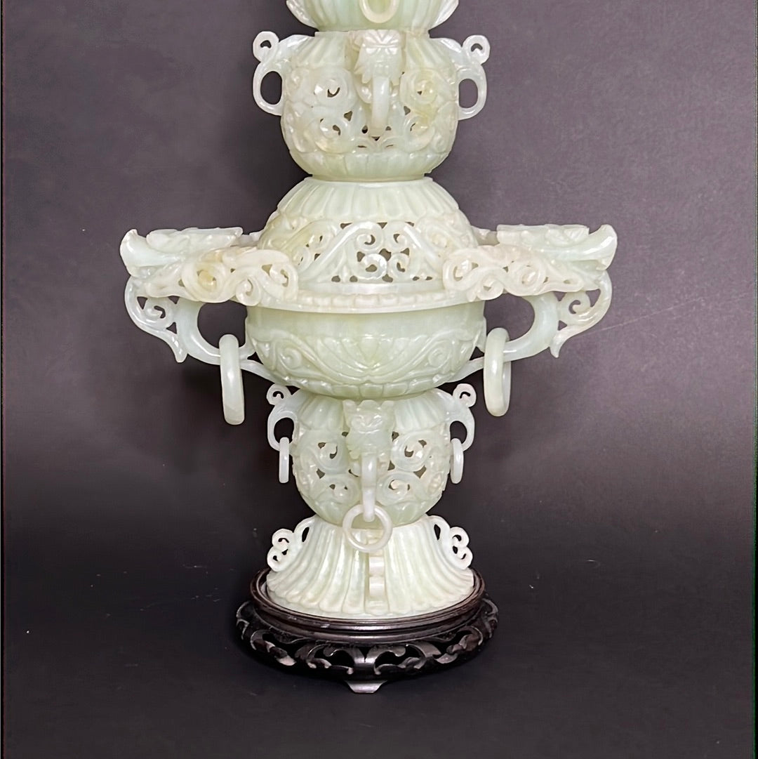 20th C Celadon Russet Jade Exquisitely Hand Carved Pagoda Tower
