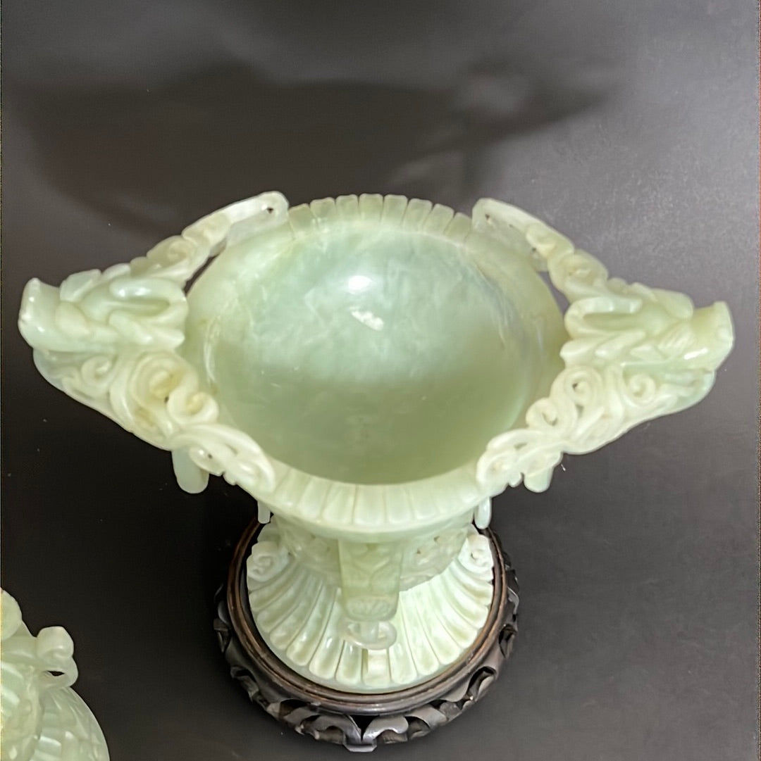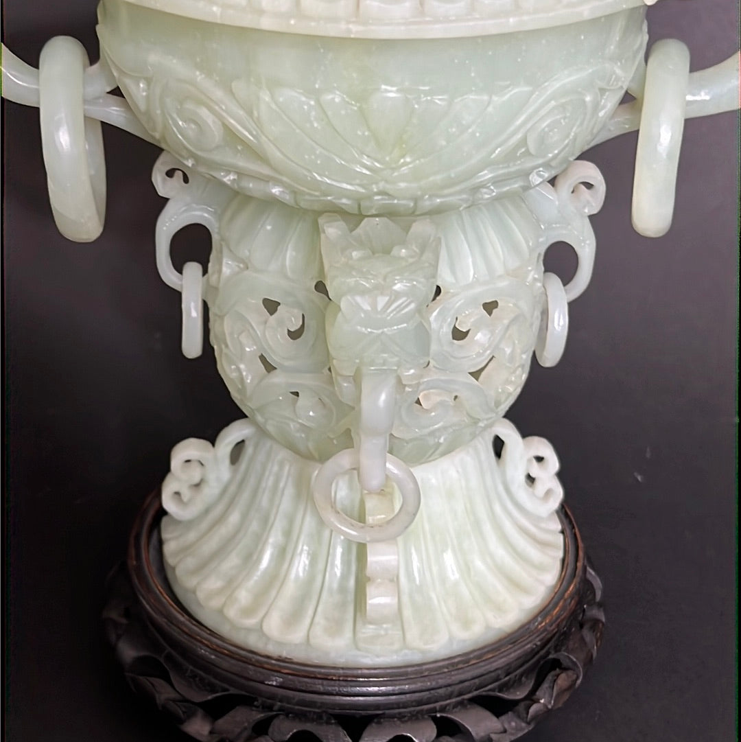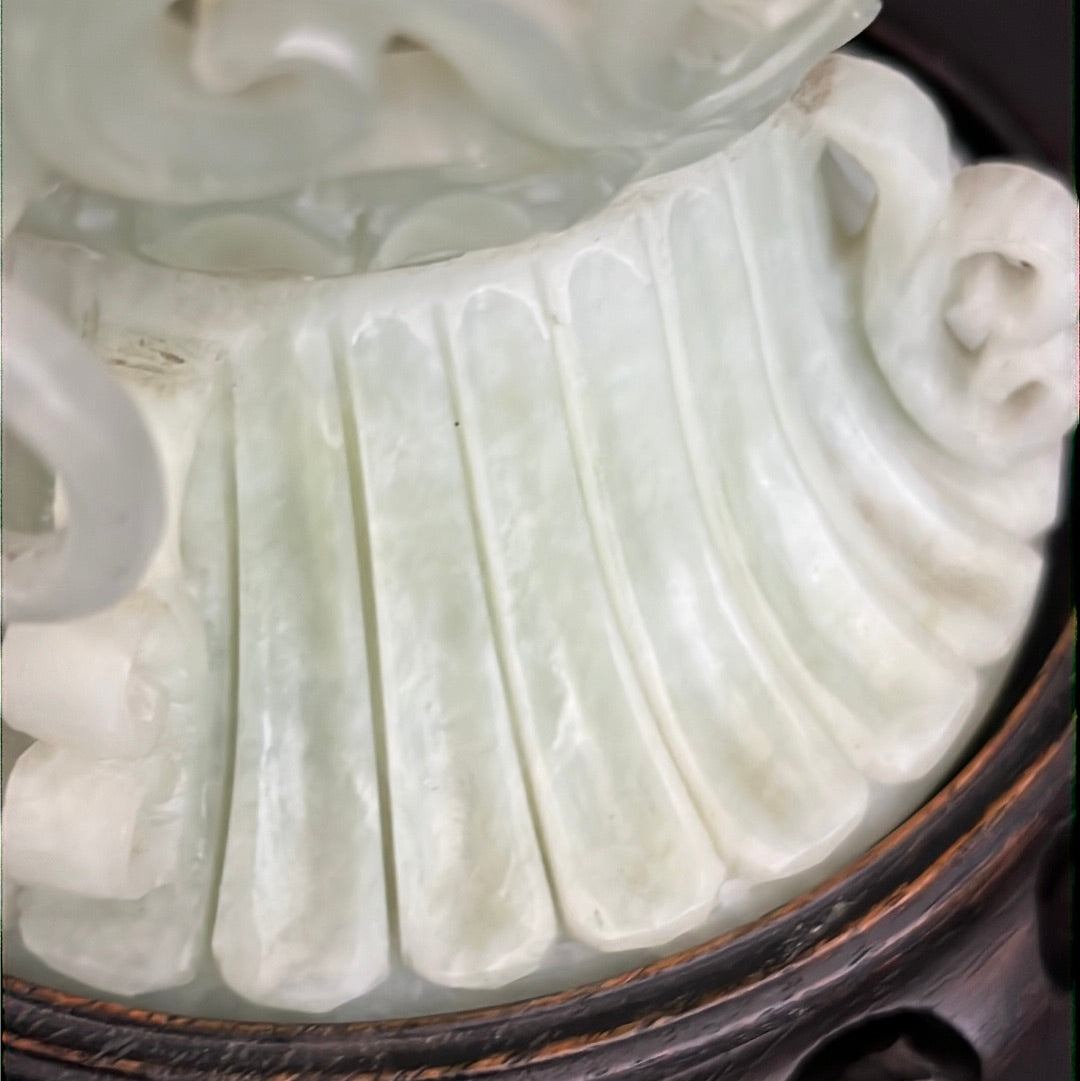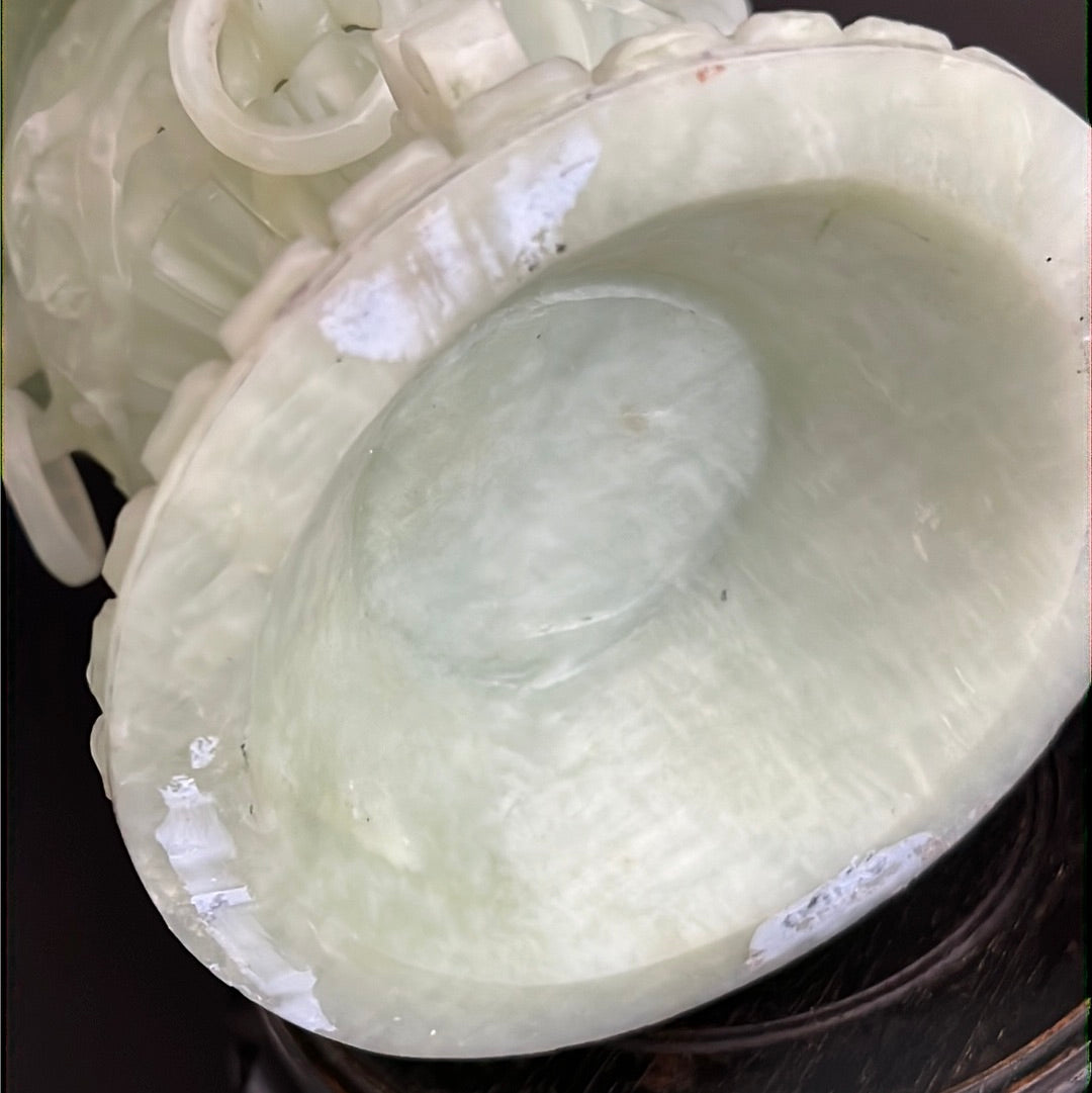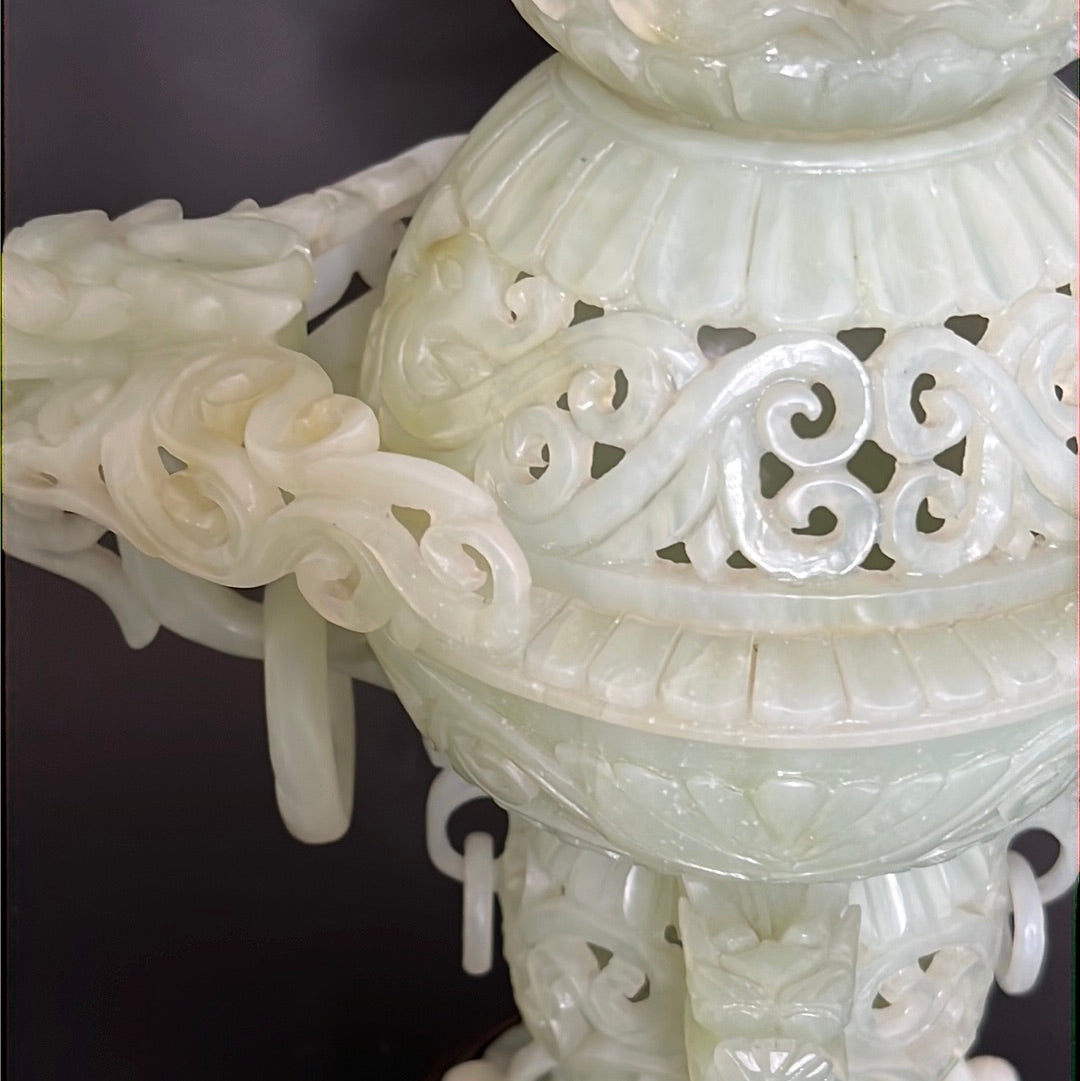 20th C Celadon Russet Jade Exquisitely Hand Carved Pagoda Tower