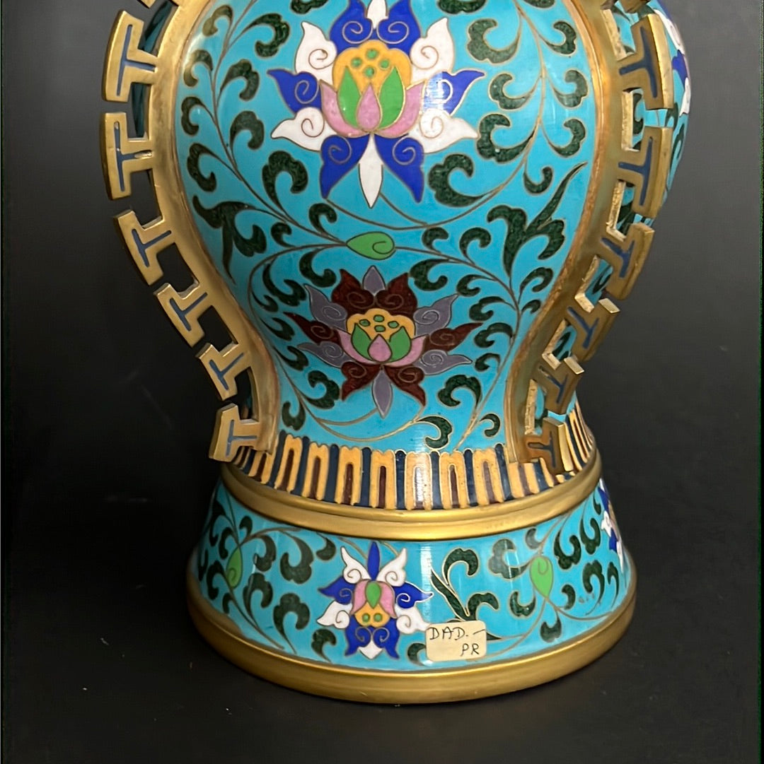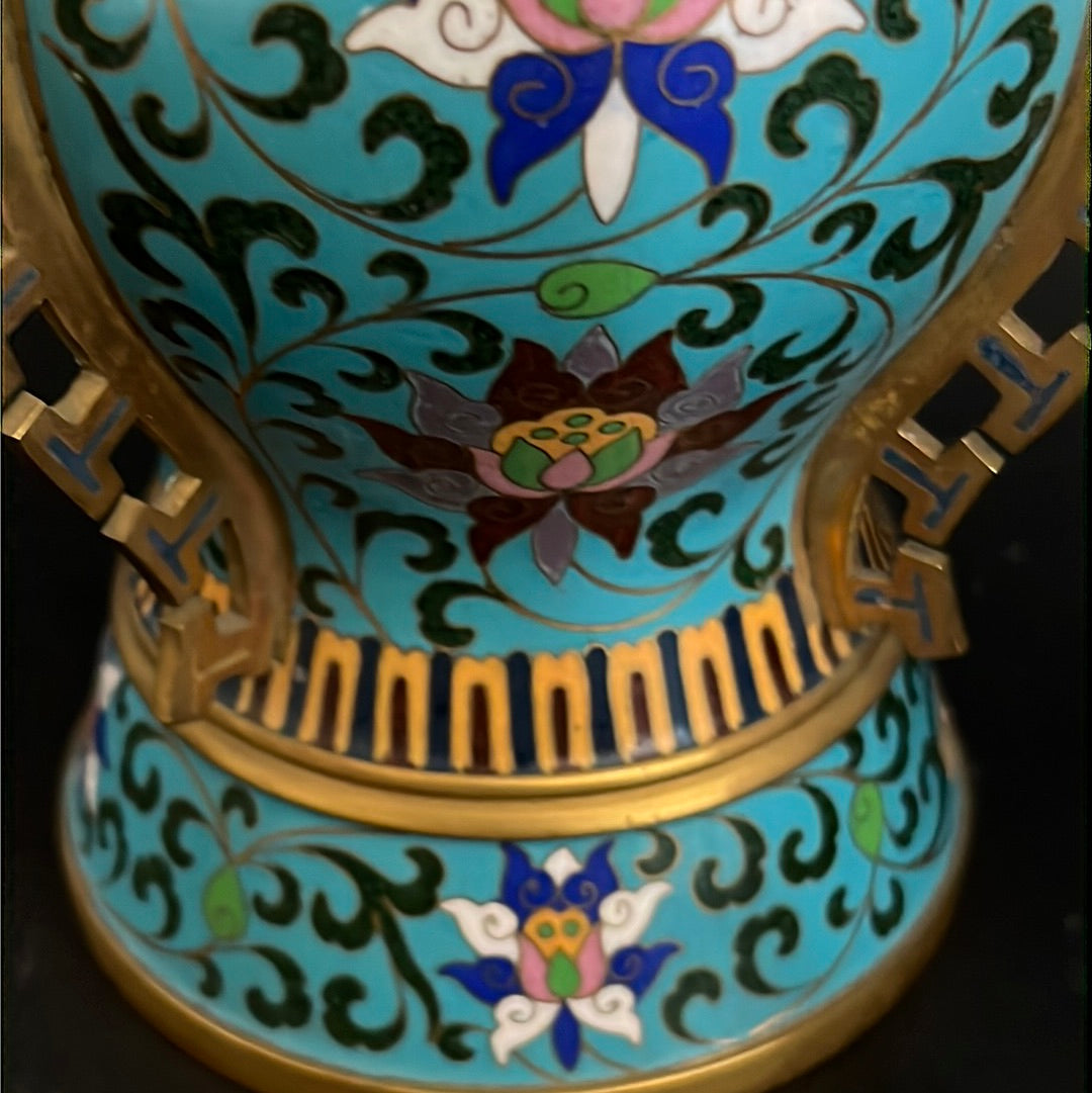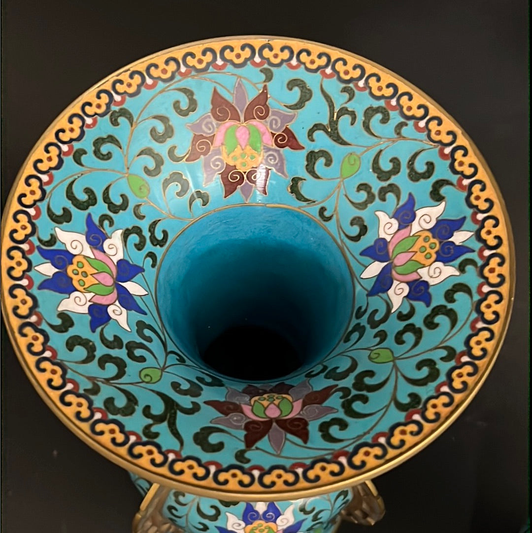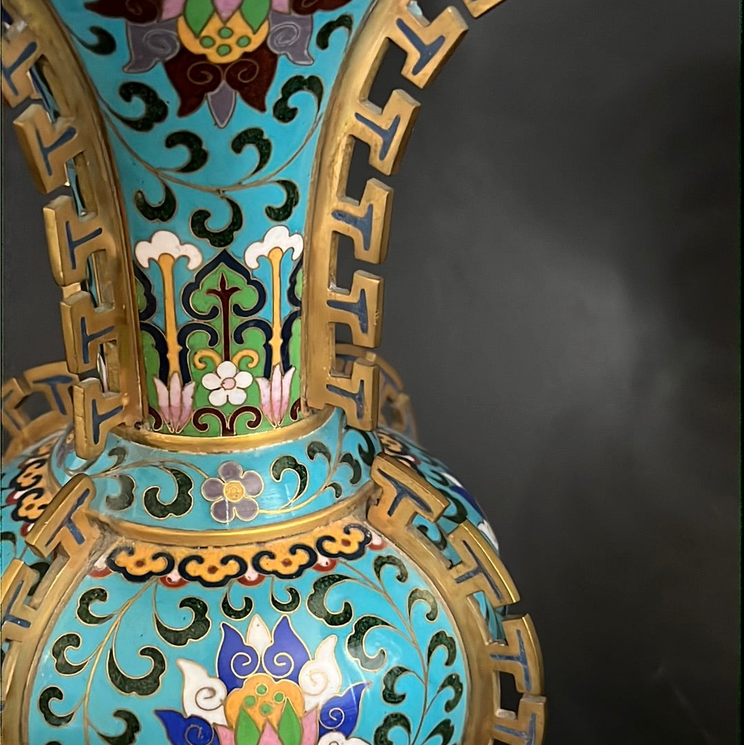 20th C. Rare Pair Chinese Cloisonné Gu Shape Vase