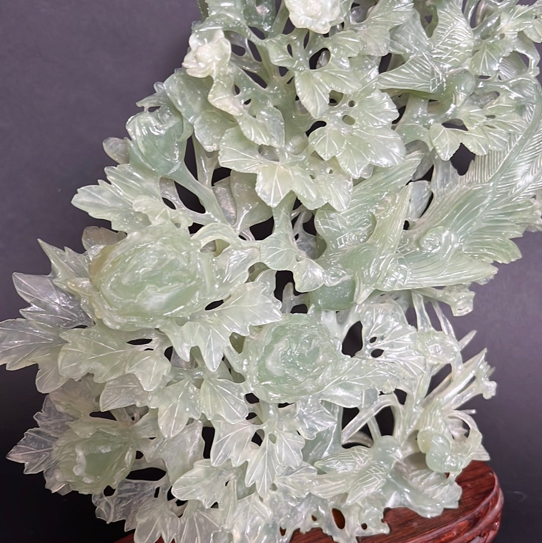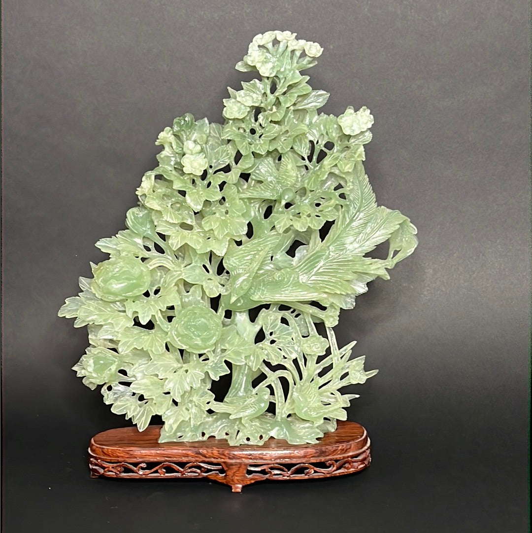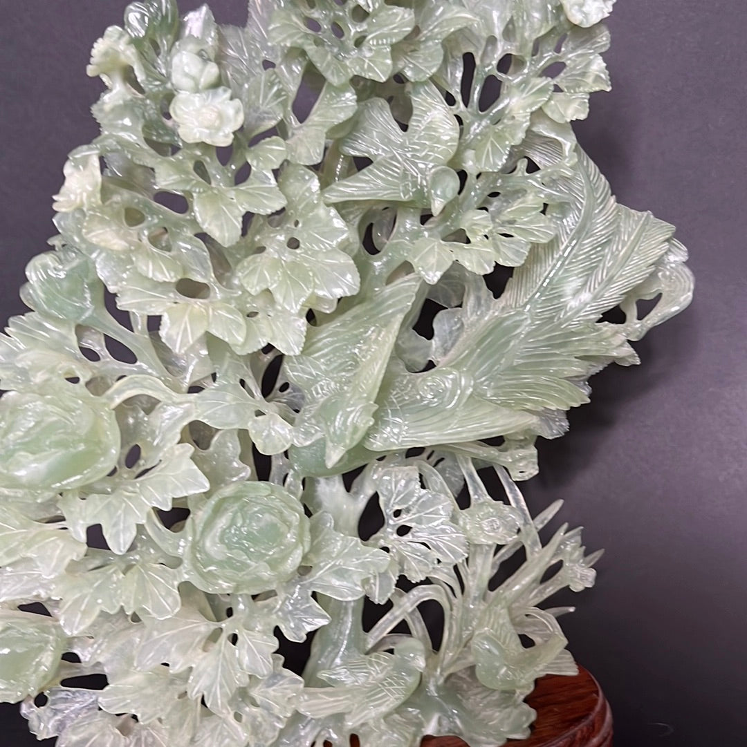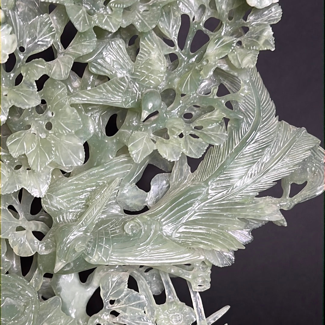 20th C. White & Greenish Chinese Jade A Mother Phoenix Bird & Tree Prides