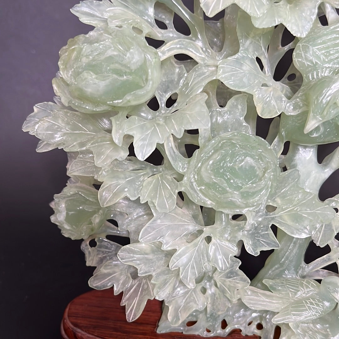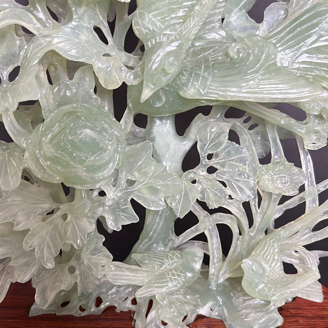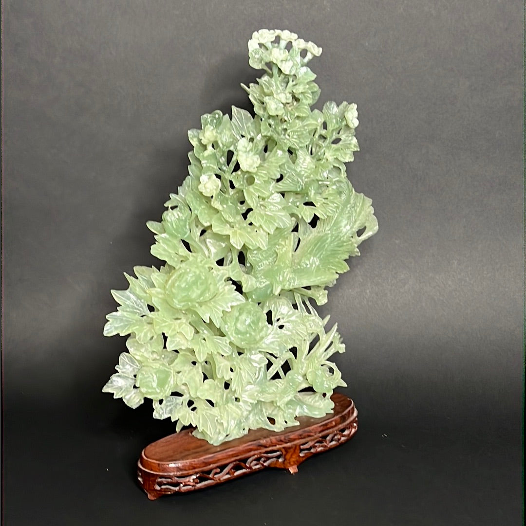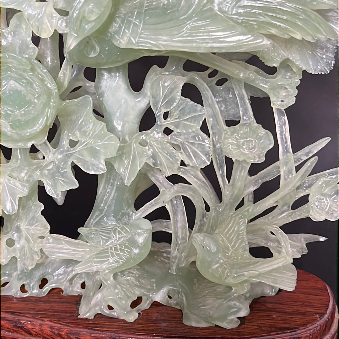 20th C. White & Greenish Chinese Jade A Mother Phoenix Bird & Tree Prides