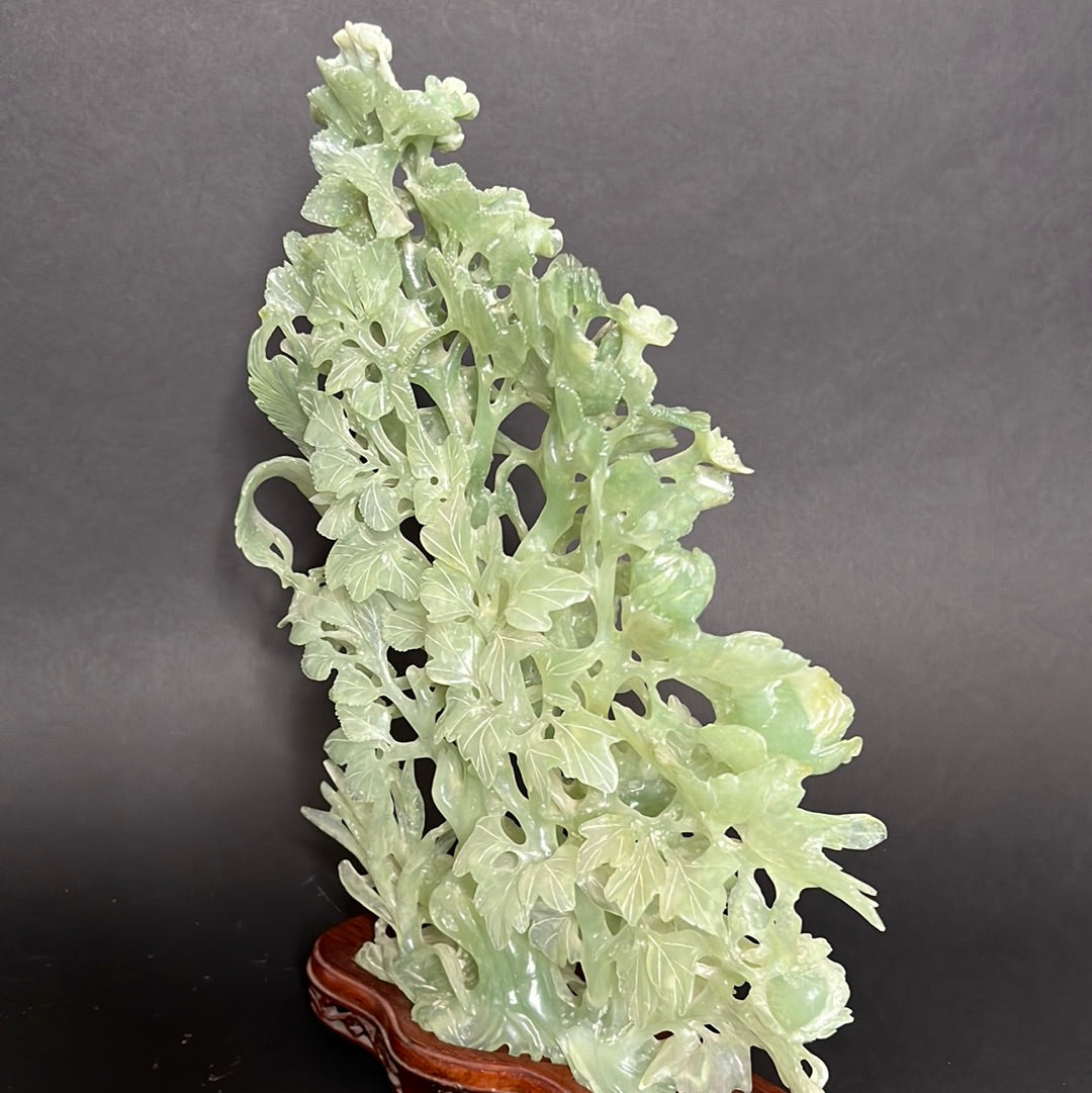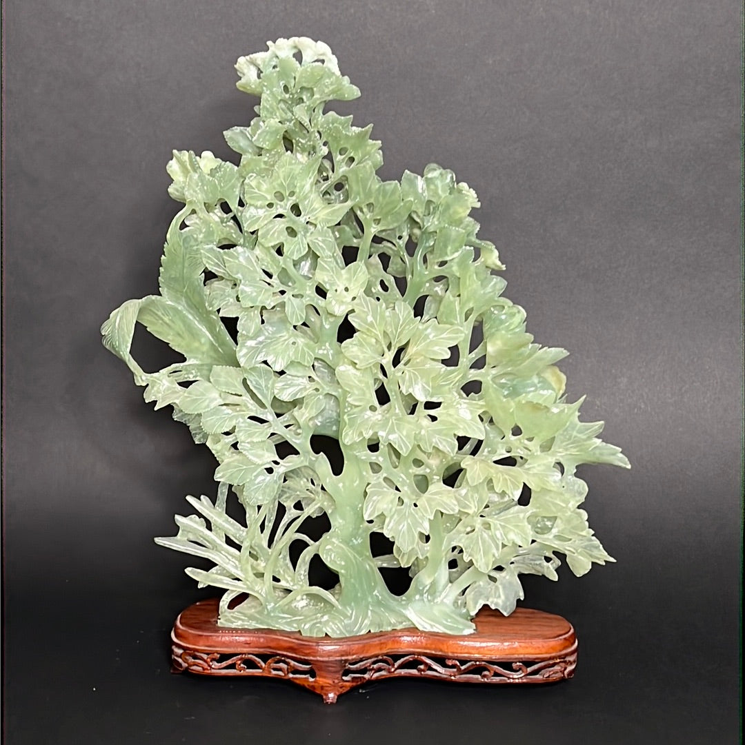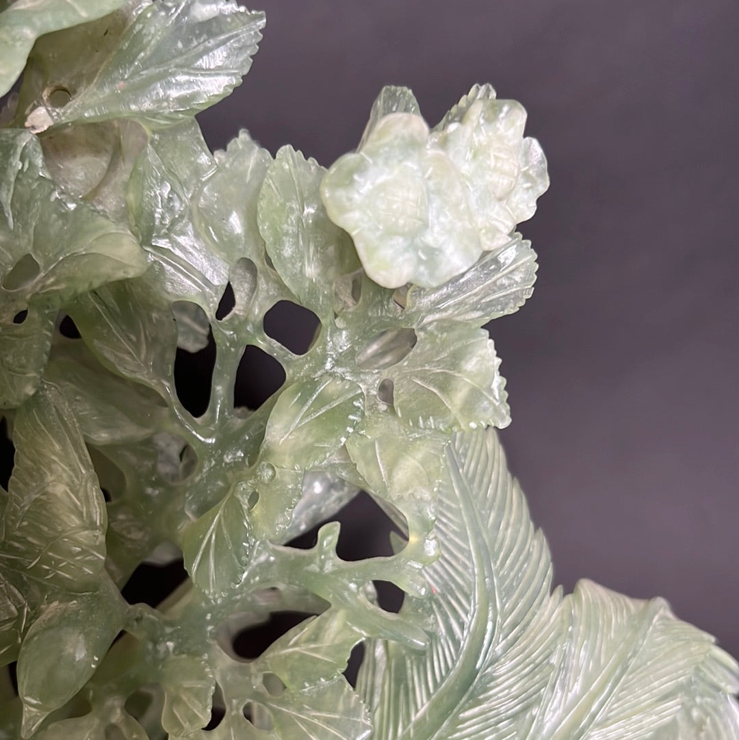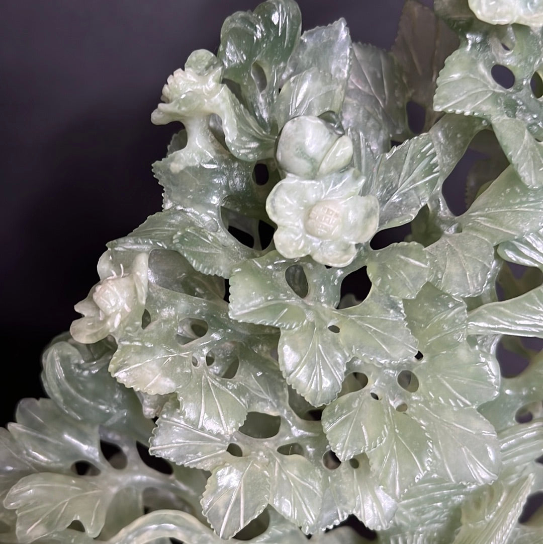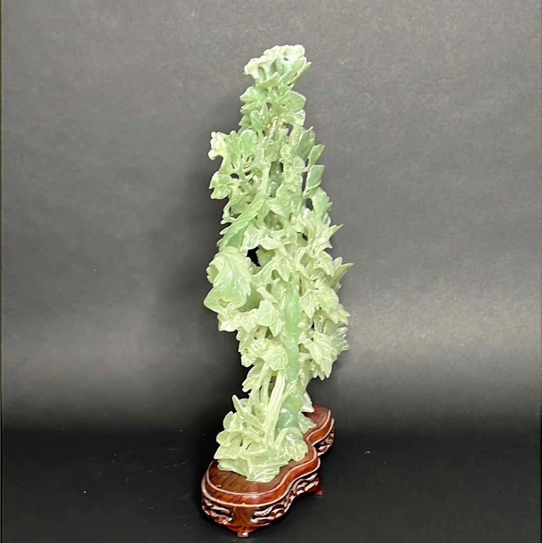 20th C. White & Greenish Chinese Jade A Mother Phoenix Bird & Tree Prides