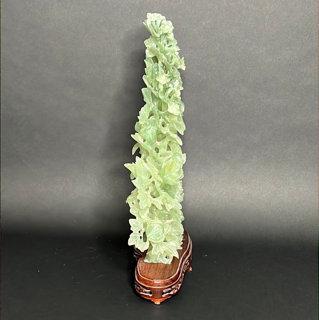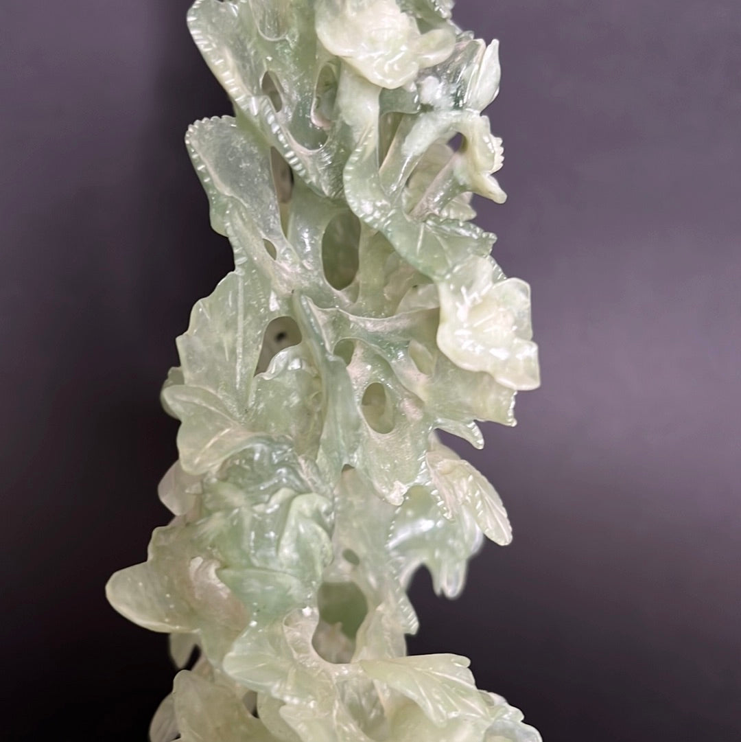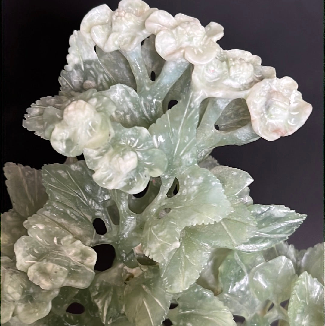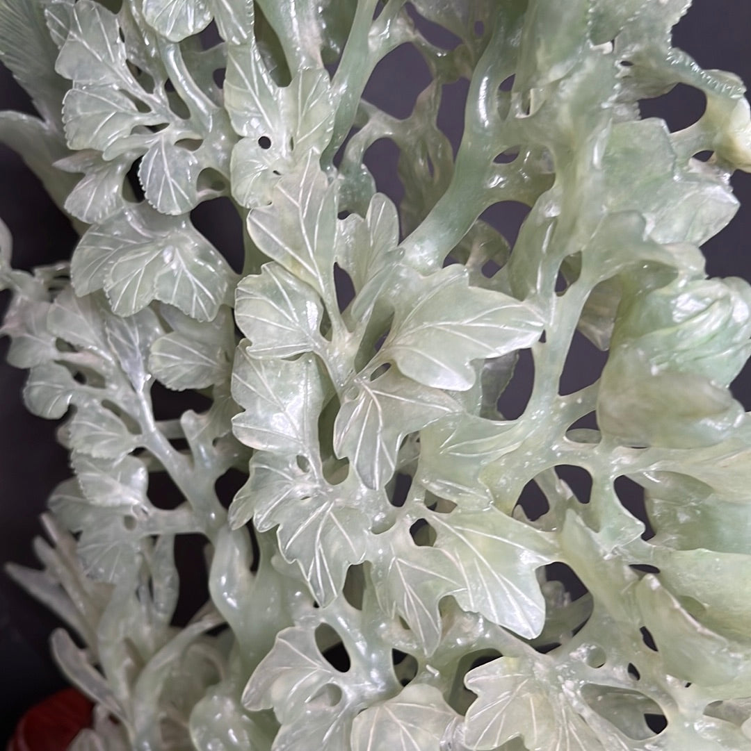 20th C. White & Greenish Chinese Jade A Mother Phoenix Bird & Tree Prides