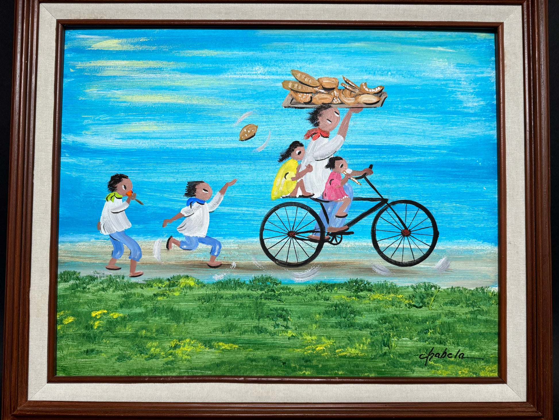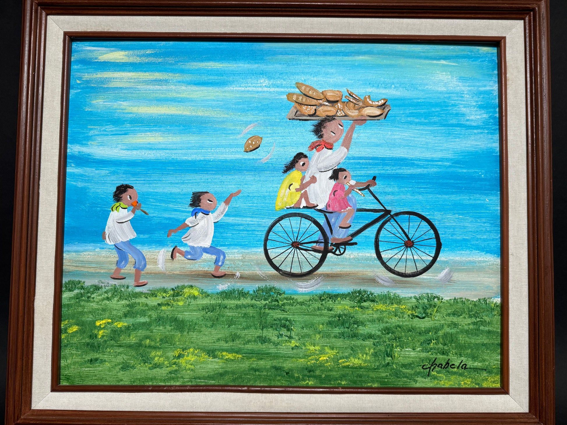 Original Oil on Board “ La Bicicleta” Elizabeth Chubela Haas 1904-2002
