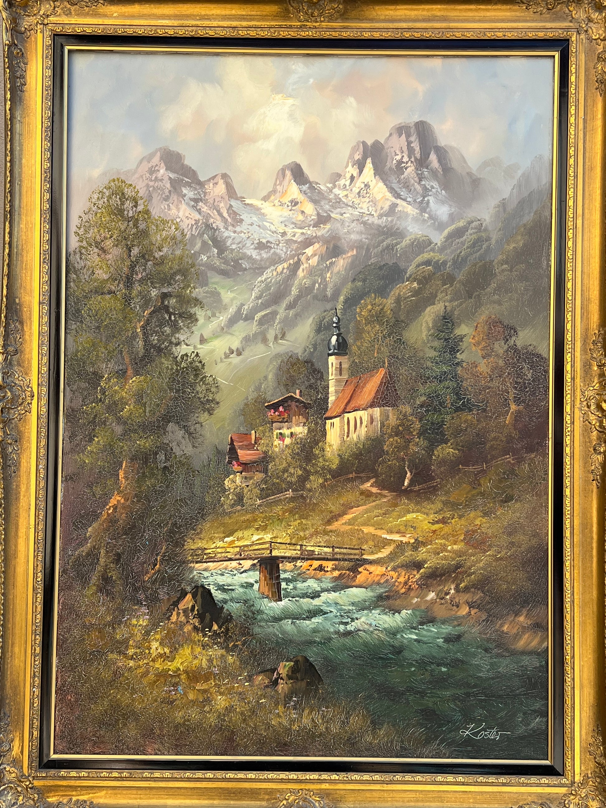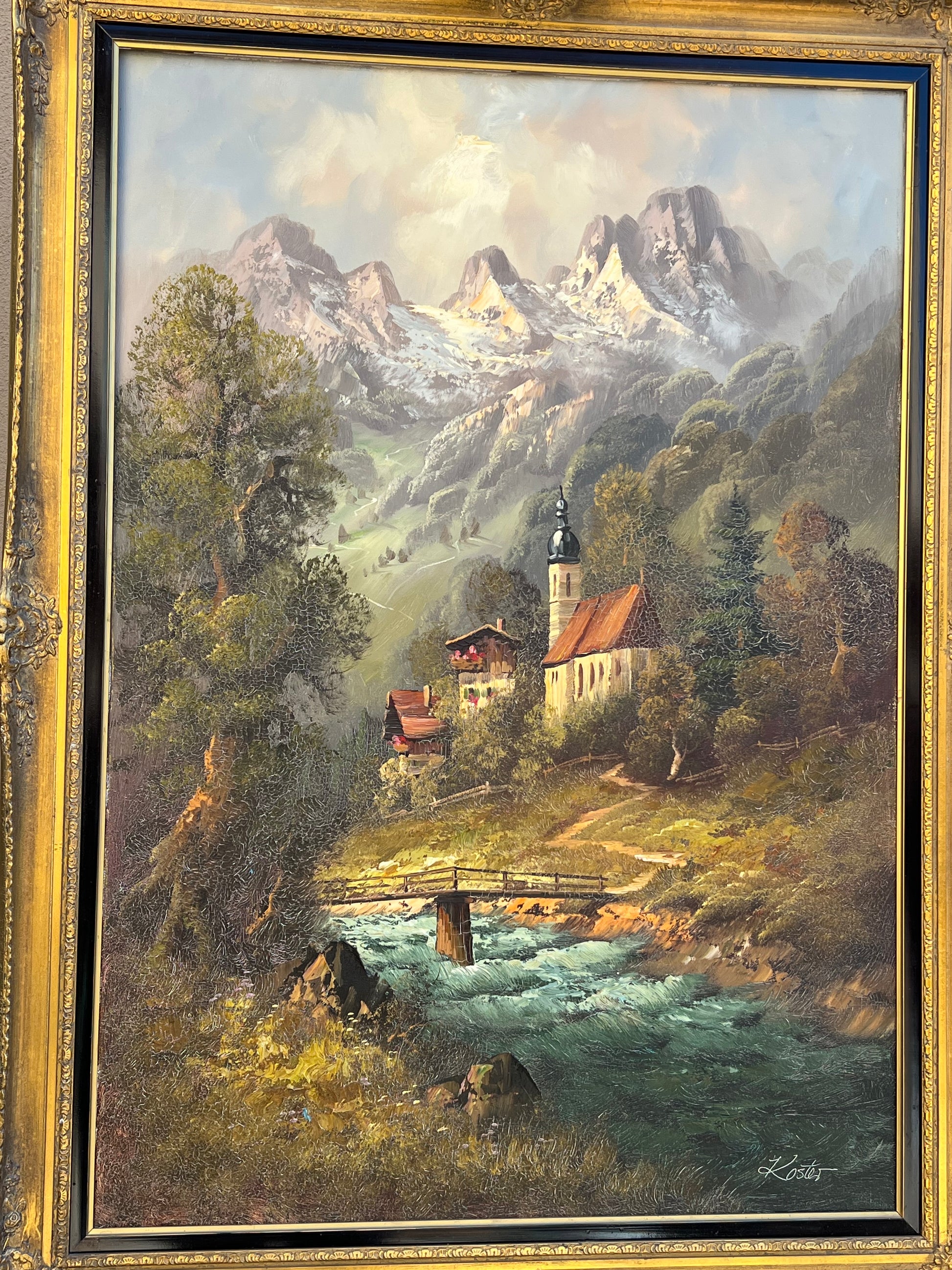 Vintage Landscape Original Oil Painting on Canvas