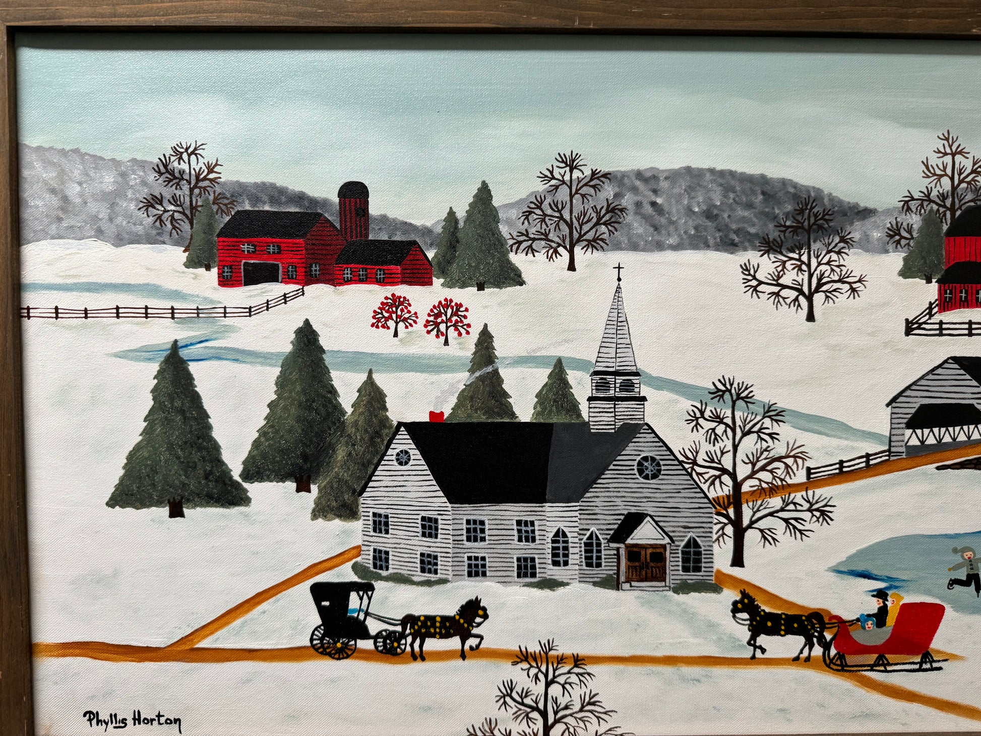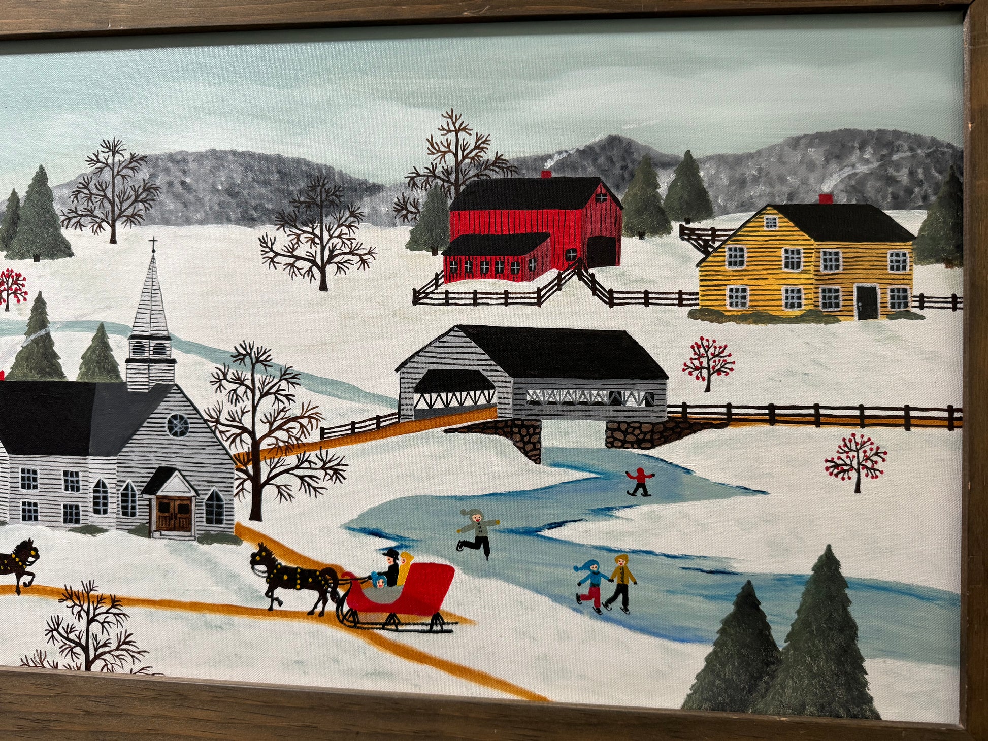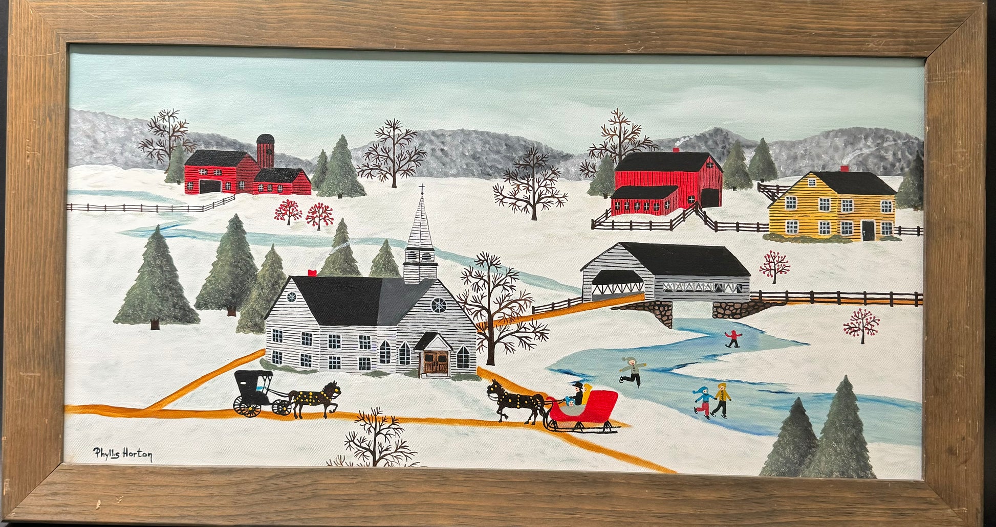 Vintage Oil Painting “ The Village Church in Winter “ 1989